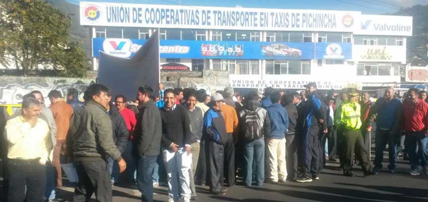 Los transportistas también se congregaron en los exteriores de la Unión de Cooperativas de Transporte en Taxis de Pichincha, al sur de la ciudad. En el punto indicaron que la medida se debe con la finalidad de manifestar su rechazo a la gestión del alcalde de Quito, Mauricio Rodas. Señalaron que el cabildo permitió la regularización de taxis ilegales.